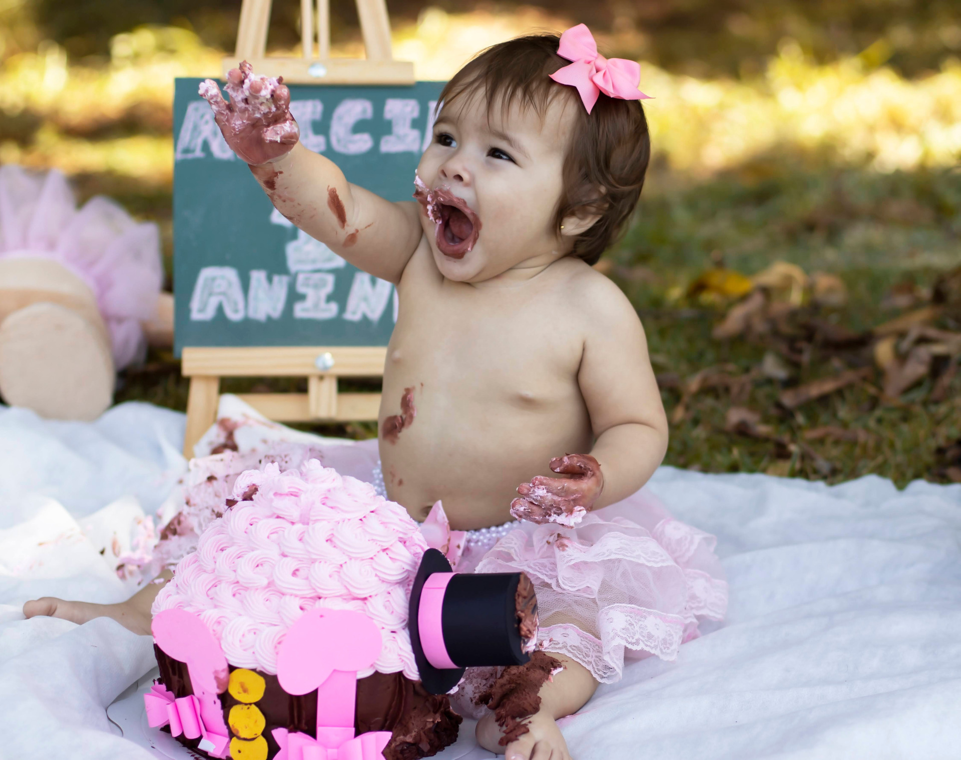 1º Smashe the cake - é um ensaio de origem americana, que significa amassar o bolo, nesse ensaio o cliente leva um bolo pequeno feito especialmente para esse momento, onde a criança vai brincar com o bolo e se lambuzar rendendo boas fotos, o ensaio é feito em um parque, que normalmente indico, pois precisa ter torneiras por perto para que possa limpar o bebê após o ensaio.